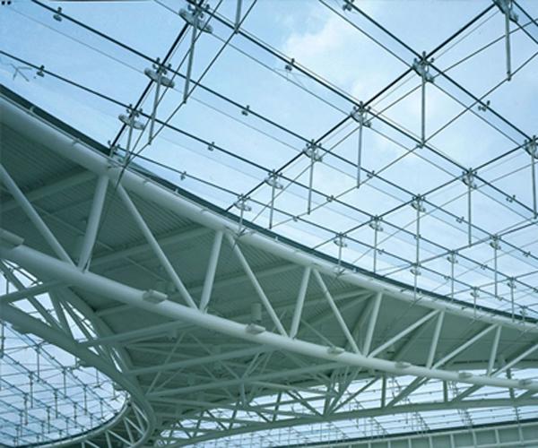 2、群體玻璃采光頂:是在一個屋頂系統上,由若干單體玻璃采光頂在結構件支承體系上組合成一個玻璃采光頂的群體,其形式可隨意變化。